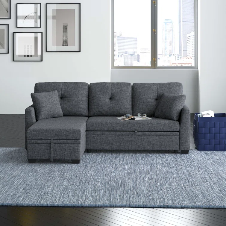 Aine 118" Wide Fabric Sectional Sleeper Sofa (Pull-Out Bed) With Storage Chaise