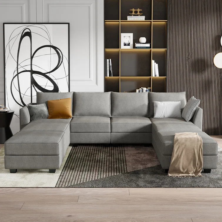 U shaped Modular Sectional Grey Sectional Sofa with Chaise