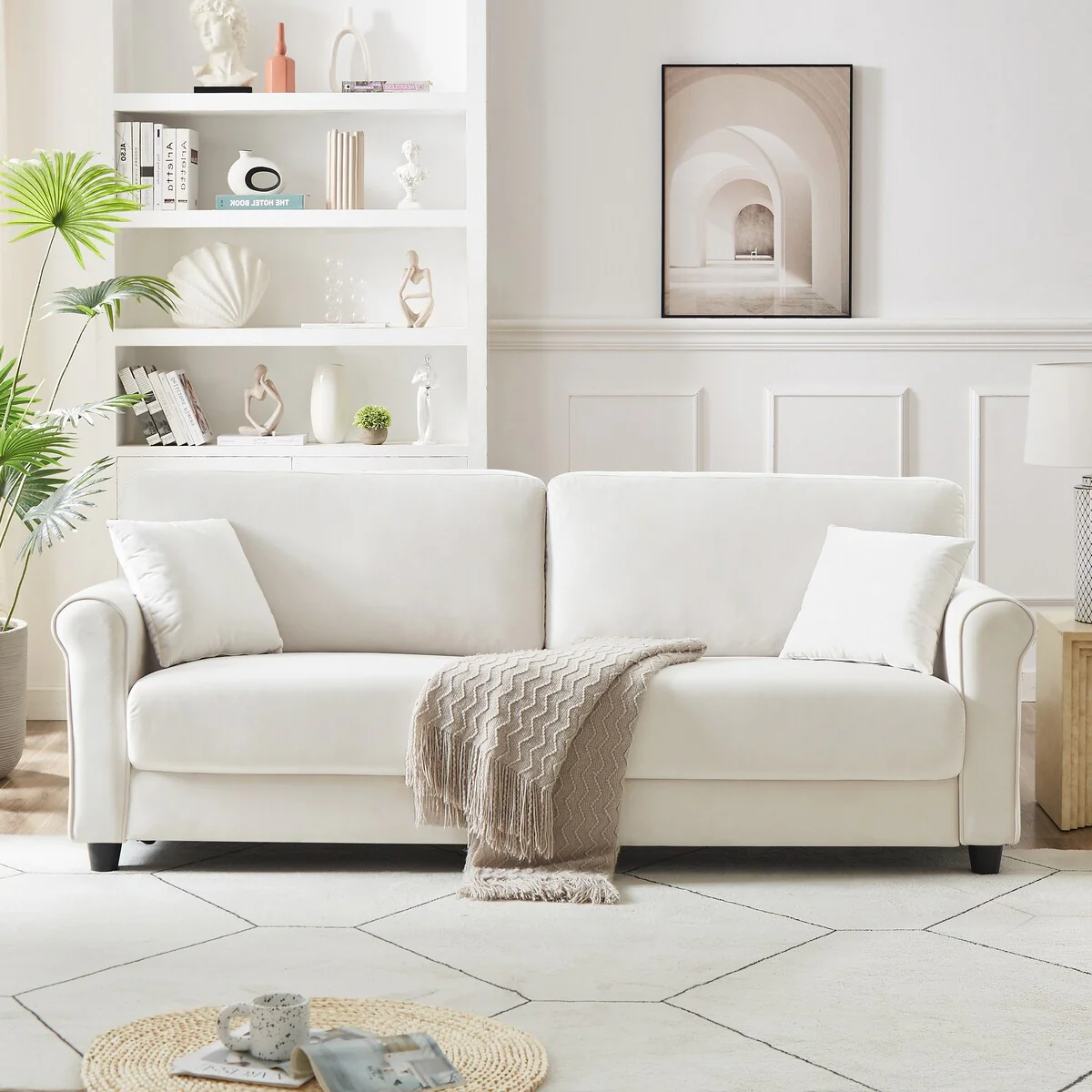 Classic Velvet Sofa Couch with Hardwood Frame, Upholstered Couch, Rounded Arms