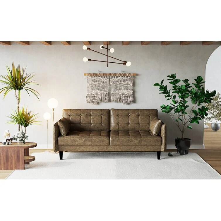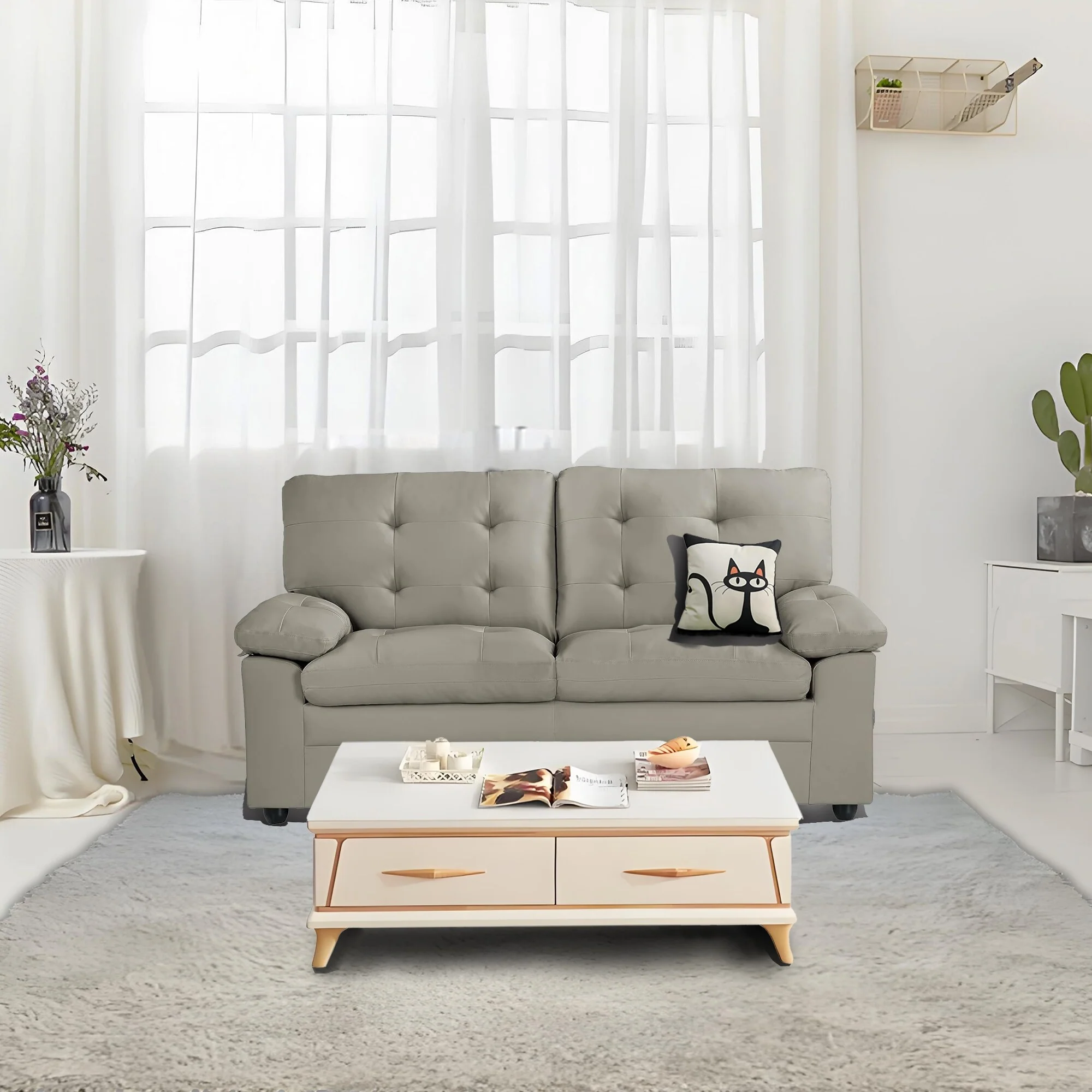 Plush Upholstered Loveseat with Faux Leather, Tufted Back, and Padded Arms - Cozy Seating for Living Room or Family Room.