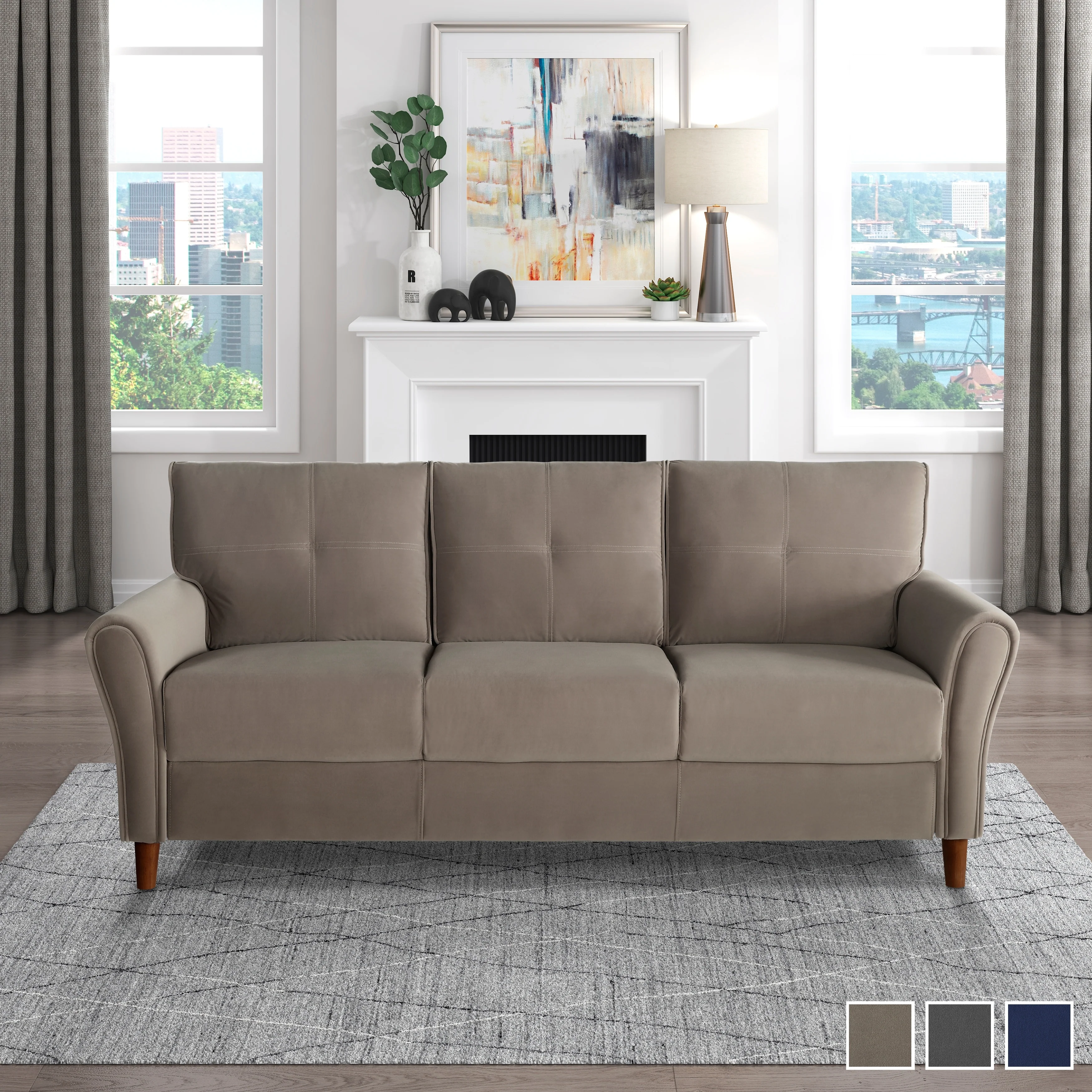 Erommy 3 Seat Sofa, 72" Sofa Couch for Living Room, Modern Fabric Couch with 4 Wood Legs, 2 Metal Support Rods for Bedroom