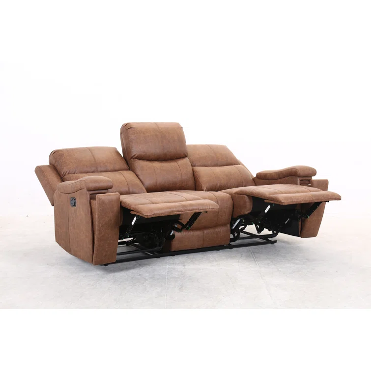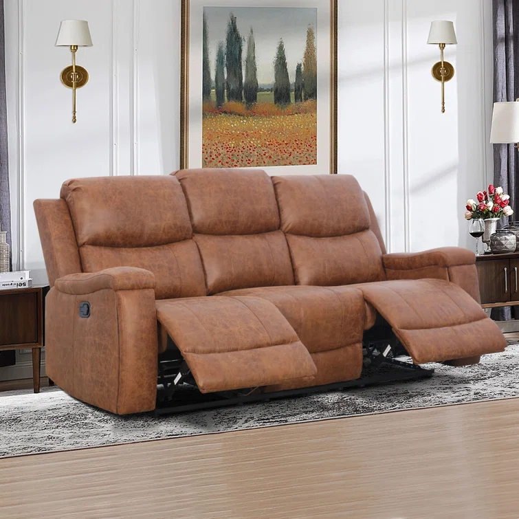 Ilkeston 79" Wide Manual Recliner Sofa Luxurious Cognac Leather with Integrated Cup Holders Family Comfort