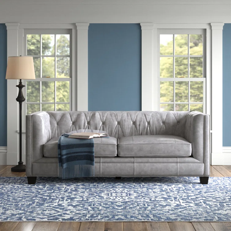 Wyat 92'' Full-Grain Genuine Italian Leather Square Arm Sofa