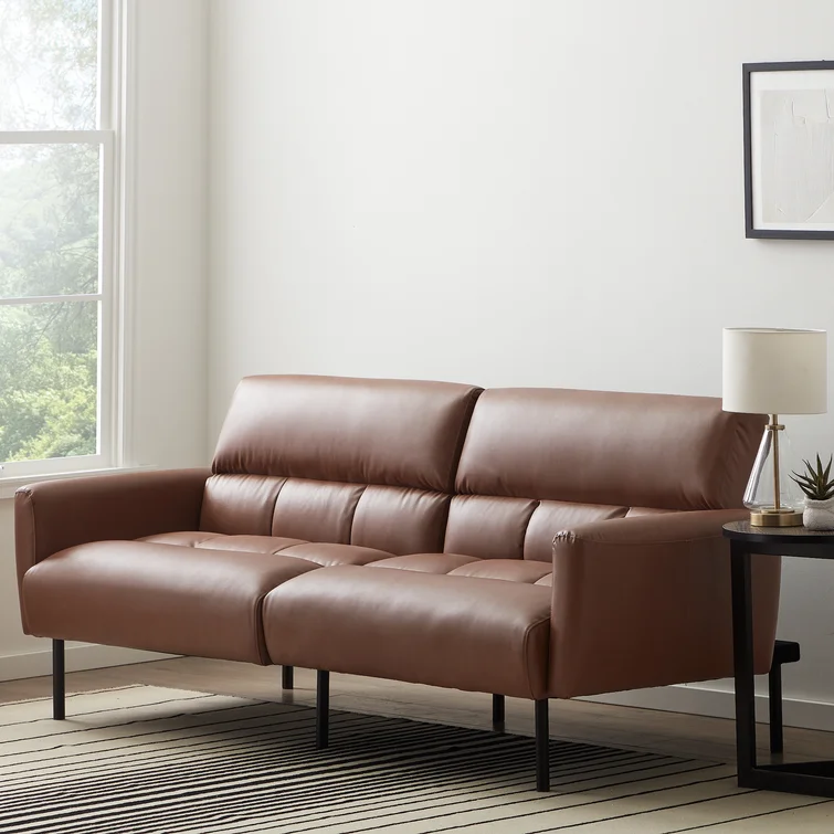 Ollie Twin 82.3'' Faux Leather Tight Back Sofa