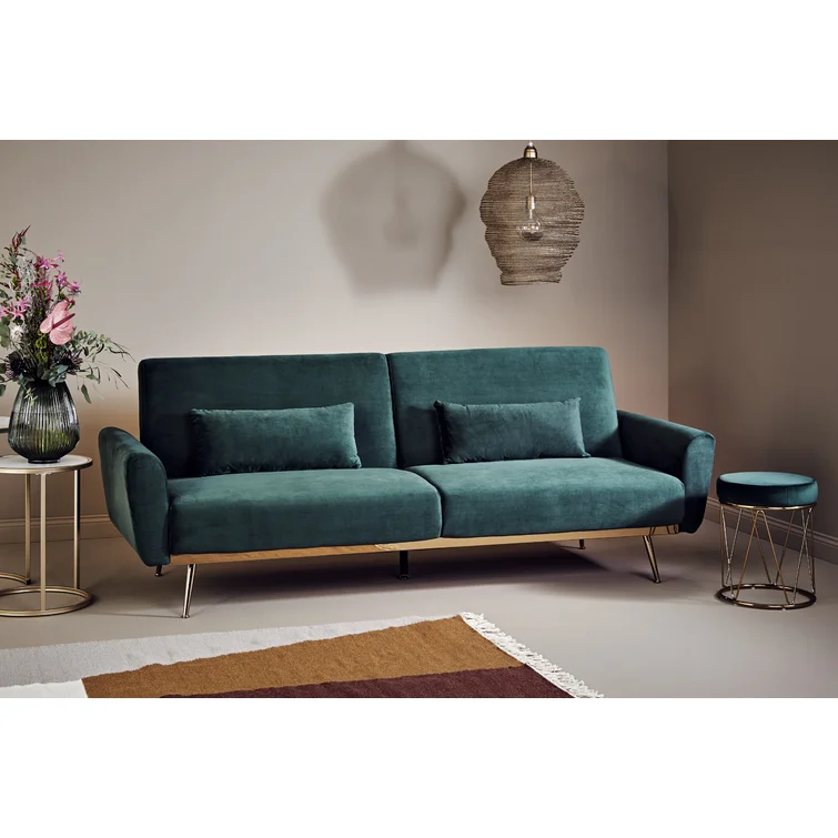 Chillax Gold 83.86" Velvet Square Arm Sleeper Sofa