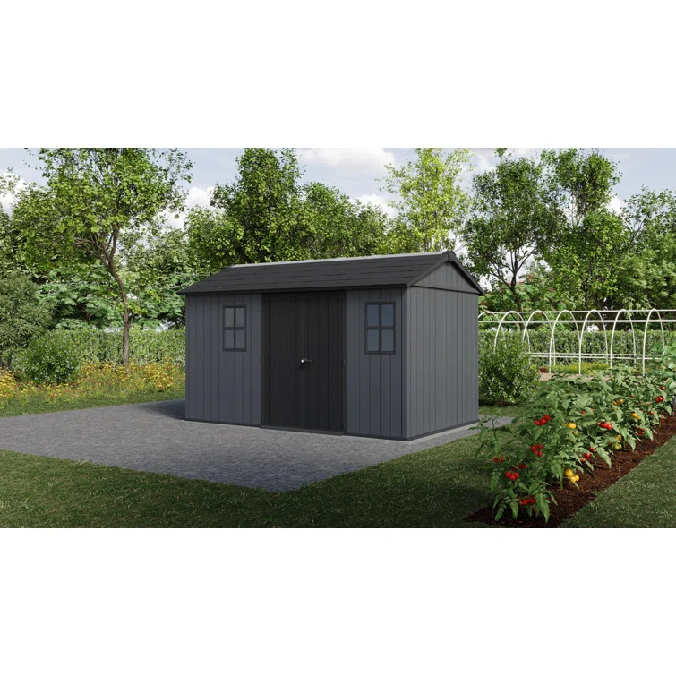 Keter Newton Plus Durable Resin Outdoor Storage Shed With Floor and Double Doors for Garden Patio Furniture and Tools, Graphite Grey (6 Available Sizes)