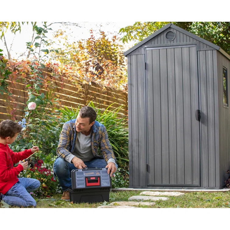 Keter Darwin 6x6 ft. Durable Resin Outdoor Storage Shed With Floor and Double Doors for Garden Patio Furniture and Tools, Graphite