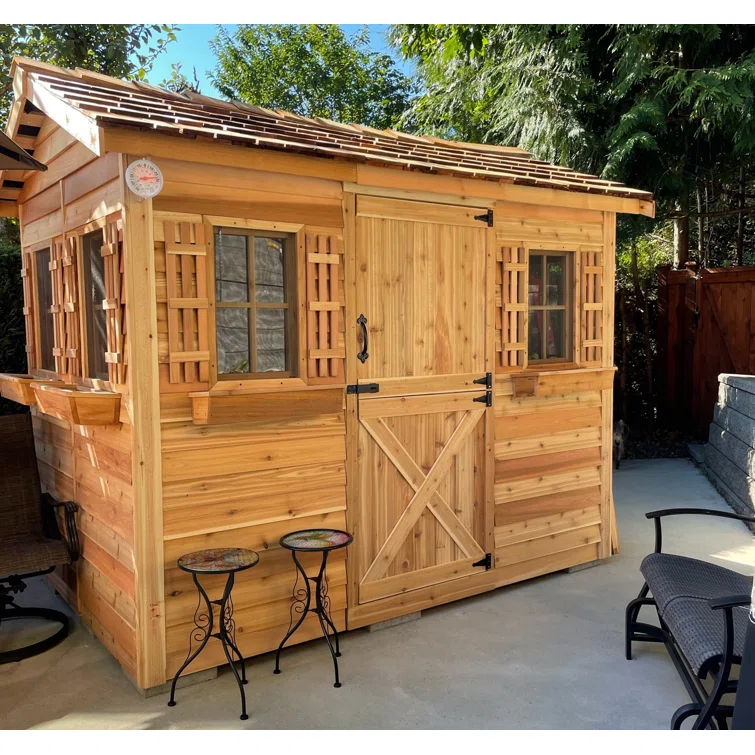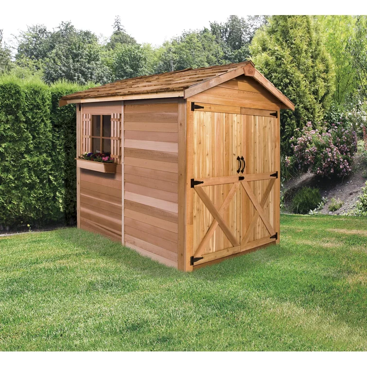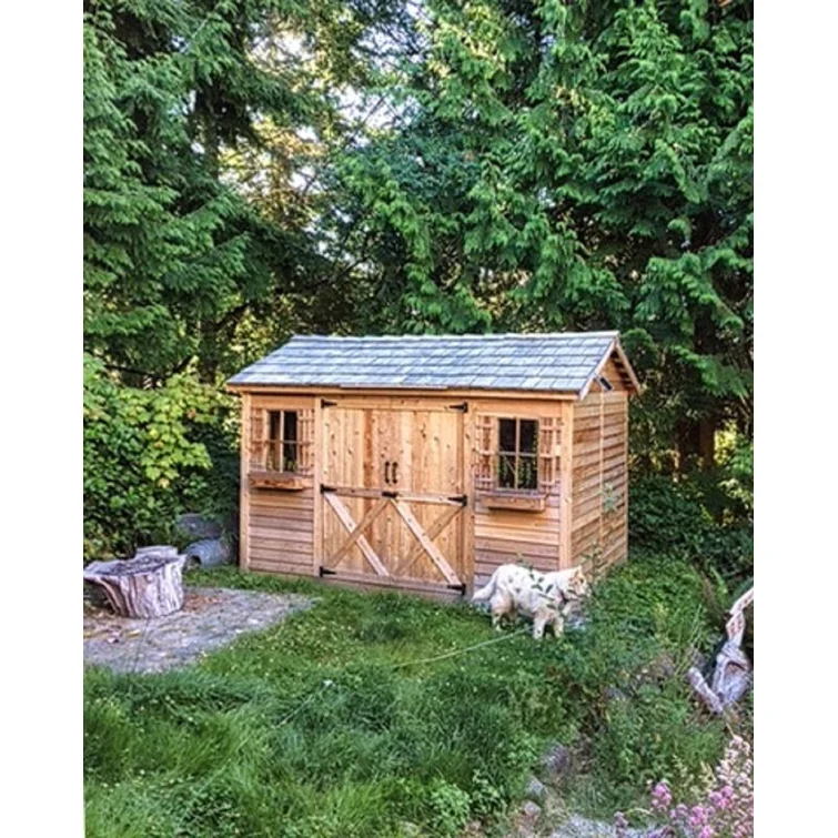 12 ft. W x 4 ft. D Sliding Door Cedar Wood Storage Shed with Metal Roof