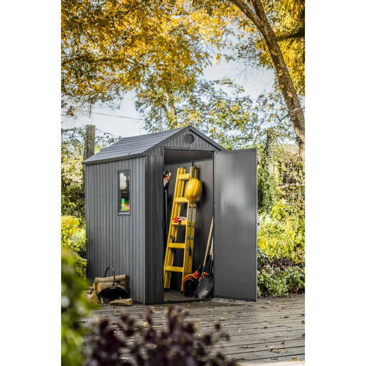 Darwin 4 ft. W x 6 ft. D Durable Resin Outdoor Storage Shed With Floor and Window for Garden Patio Furniture and Tools, Grey
