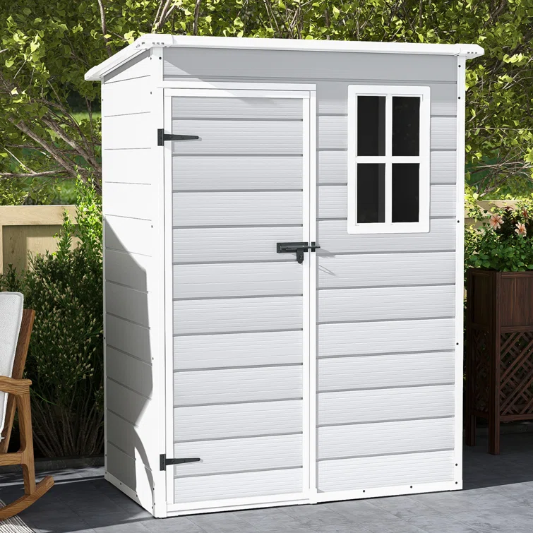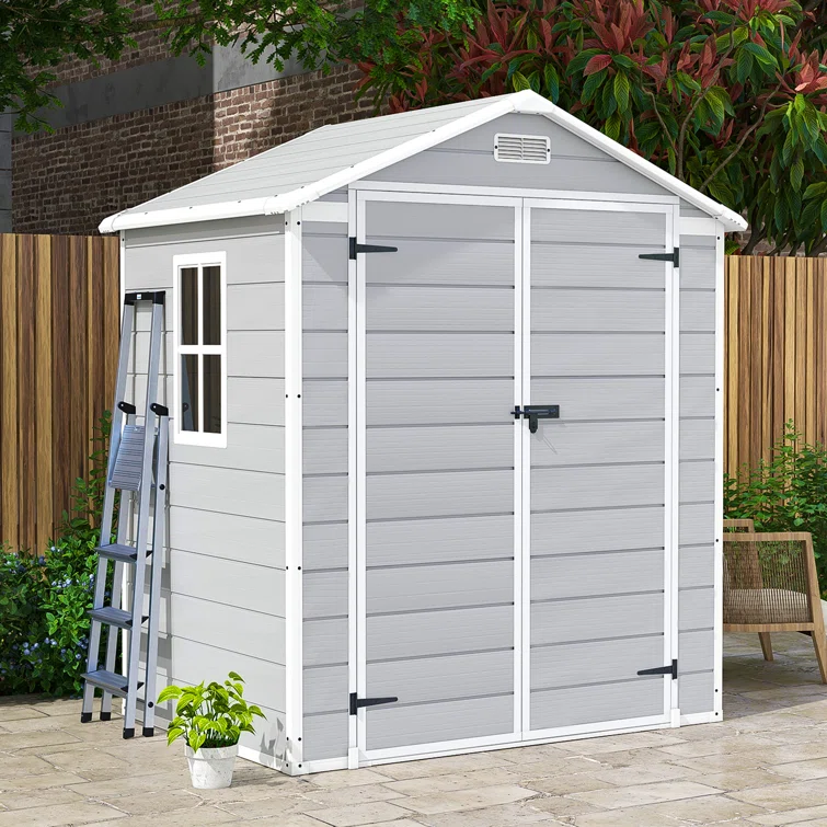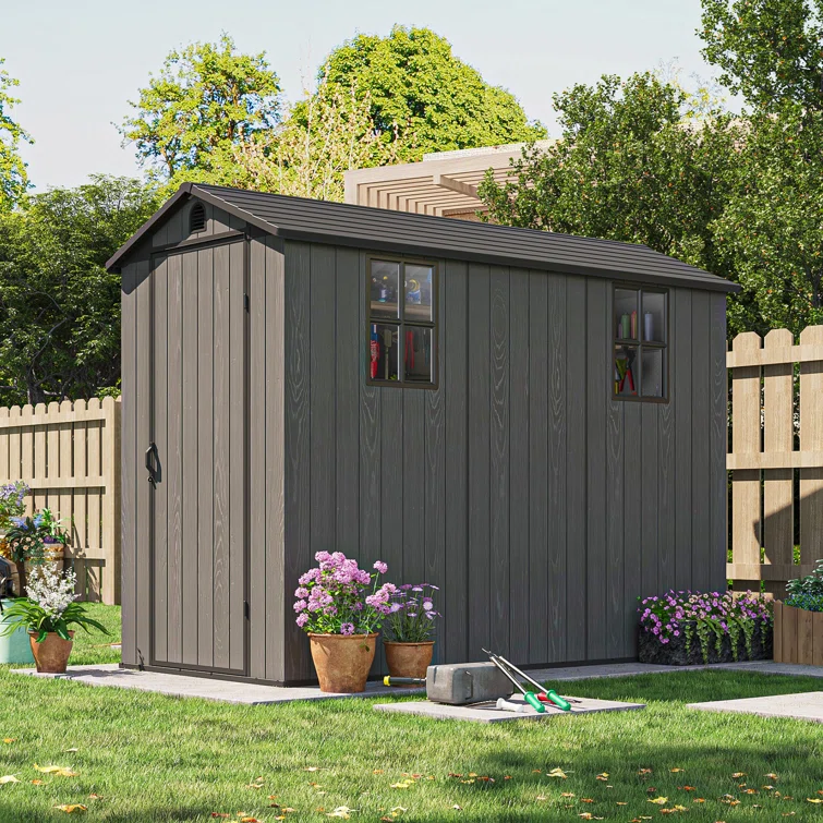 4 ft. W x 8 ft. D Plastic Storage Shed with Floor, Resin Shed with Windows and Lockable Doors