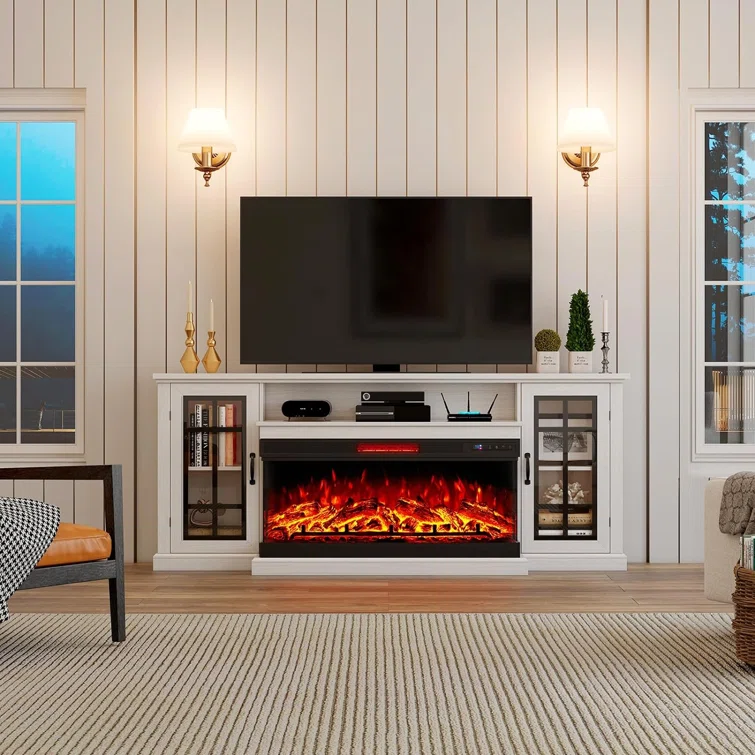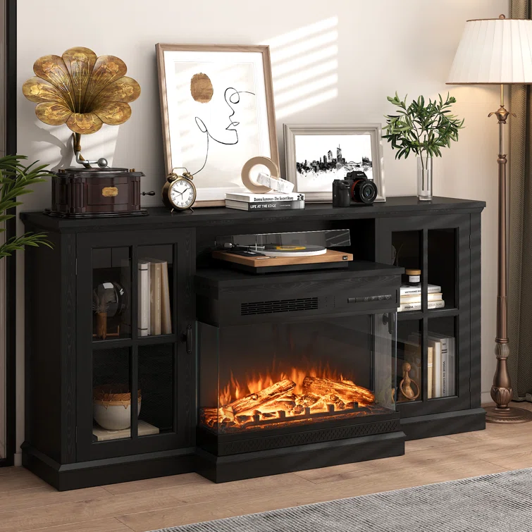 Biggsville TV Stand for Up to 78"TV, TV Console Table 42"Electric Fireplace & LED Lights Living Room