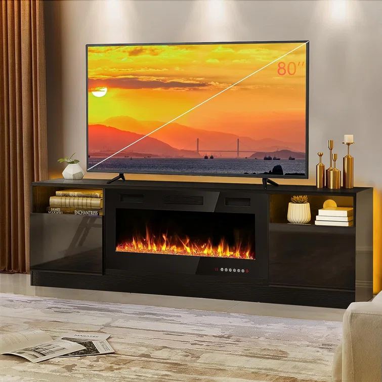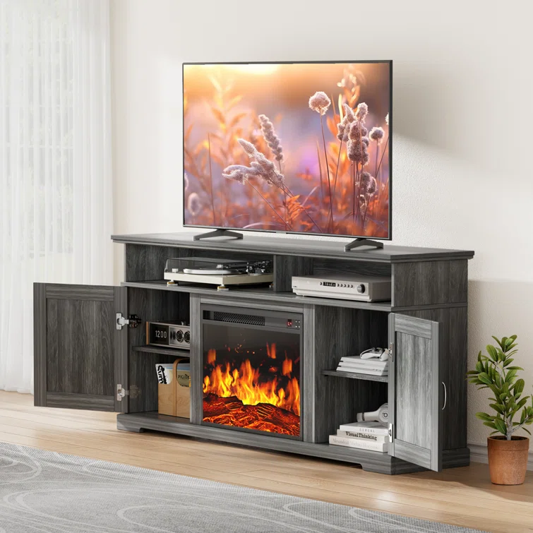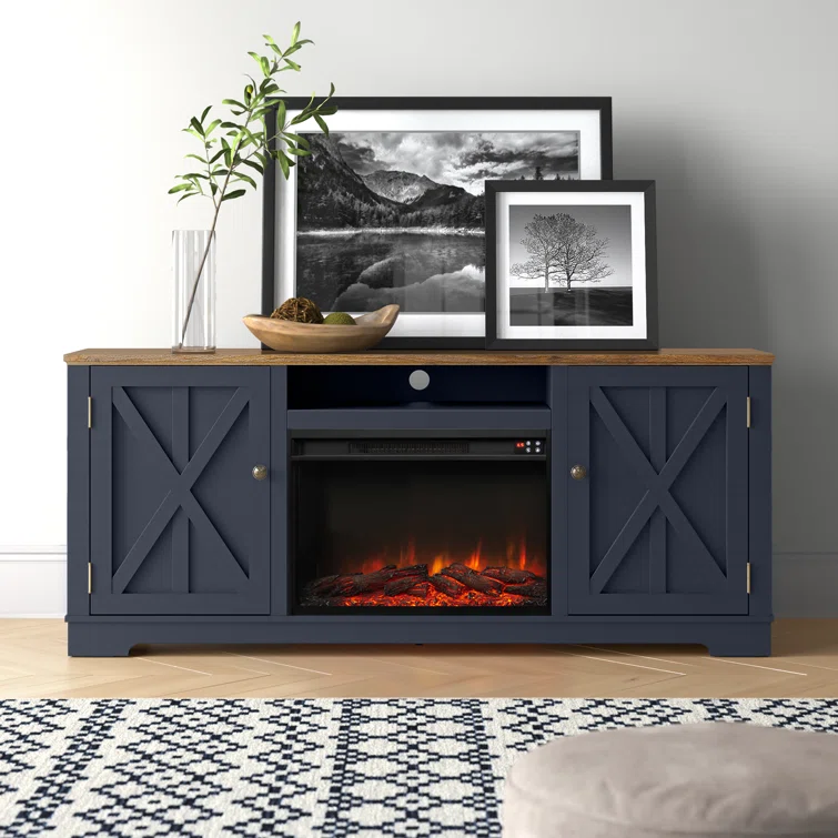 Aillie Farmhouse TV Stand For TVs Up To 70" With Electric Fireplace Included