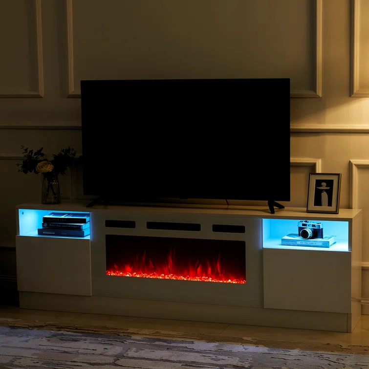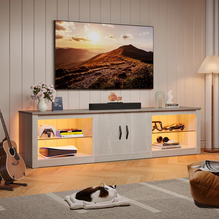 Brandenburg 70 Inch Led TV Stand for 75 Inch TV Large Entertainment Center Gaming with Adjustable Glass Shelves