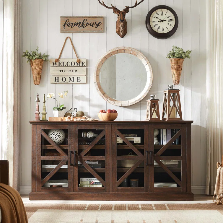 Cesilee TV Stand for TVs up to 75" with 2 Sliding Barn Doors and Built-In Charging Station