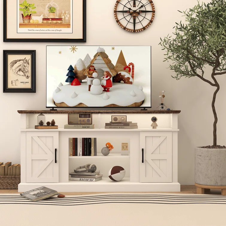 Brixham 96 inch TV Stand Console for TVs up to 100 inches, No Assembly Required, Two-Tone Finish